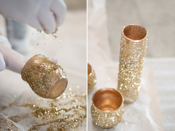 And I would love to have these pretty DIY glittered vases from Apple Brides casting a pretty glow around the room.