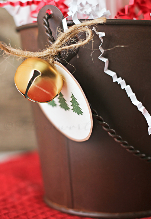 Add a bell & a gift tag to the handle for added visual interest. You can download this tag & the rest of the set HERE.