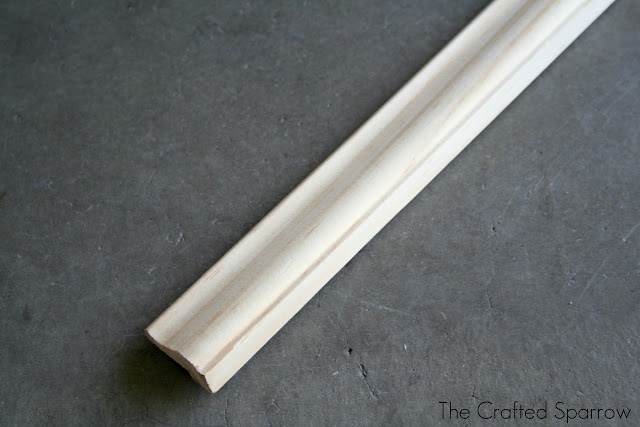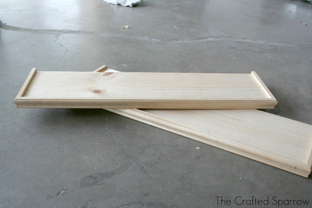 I chose the most inexpensive molding I could find, it actually worked perfect. It is only about 1.5″ wide and had a little lip that rested against the pine board which made it so easy to keep straight when we put it on the shelves.