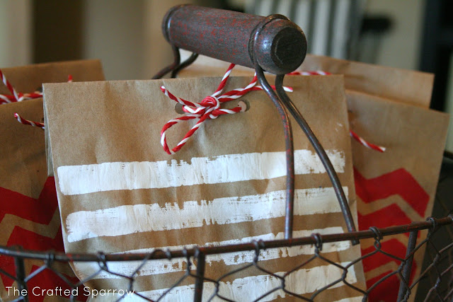 I wanted to create something I could use as packaging for my son’s class treat for Valentines Day so I chose a red & white acrylic paint to use when stamping on my bags.