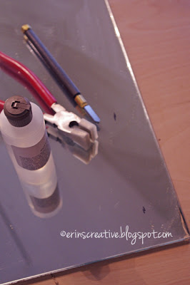 The first thing I did was cut my FREE mirror. Gotta love friends that inform you of trash on the side of the road. The mirror was broken (a very large broken mirror) that was put out for trash. I used it and cut it down to size…twice. The first time it broke, so I had to adjust my entire design plan.