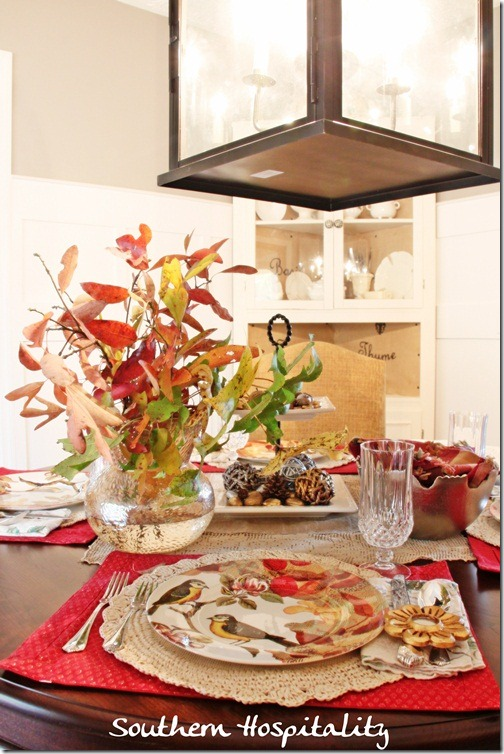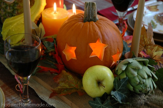 Even though Halloween is over,  it’s not too late for carved pumpkins.  Hoosier Homemade shares a great fall tablescape tutorial to show you how.