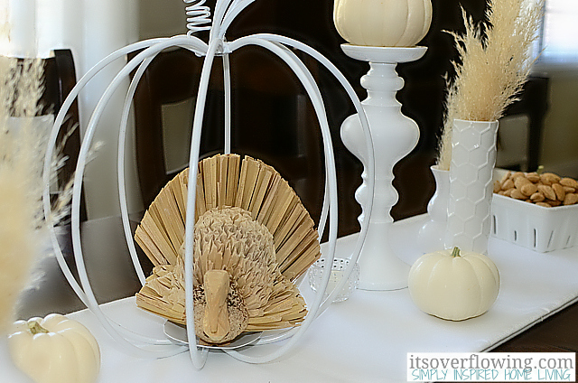 Lots of texture is the key to creating interest in a mostly white tablescape.  And It’s Overflowing does a great job with her mostly white Thanksgiving centerpiece.