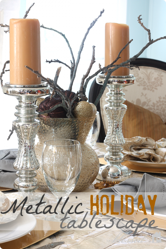 thanksgiving table Silver and Gold work together beautifully in this pretty metallic holiday tablescape by My Blessed Life.