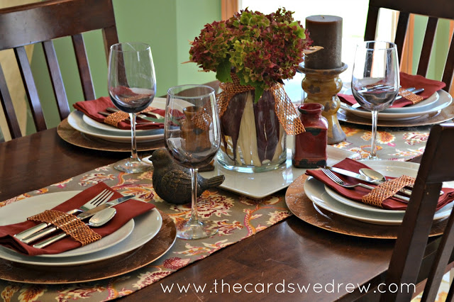 The Cards We Drew created a classic fall-hued Thanksgiving tablescape that will  make you want to pull up a chair and join in the fun!