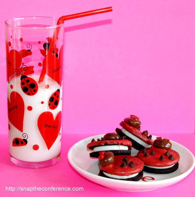 Each and every February we’re paid a visit by the love bugs…They leave little love notes and gifts for the kids around Valentine’s Day. We usually kick of the visit with a themed snack and the kids loved making these cookie bugs.